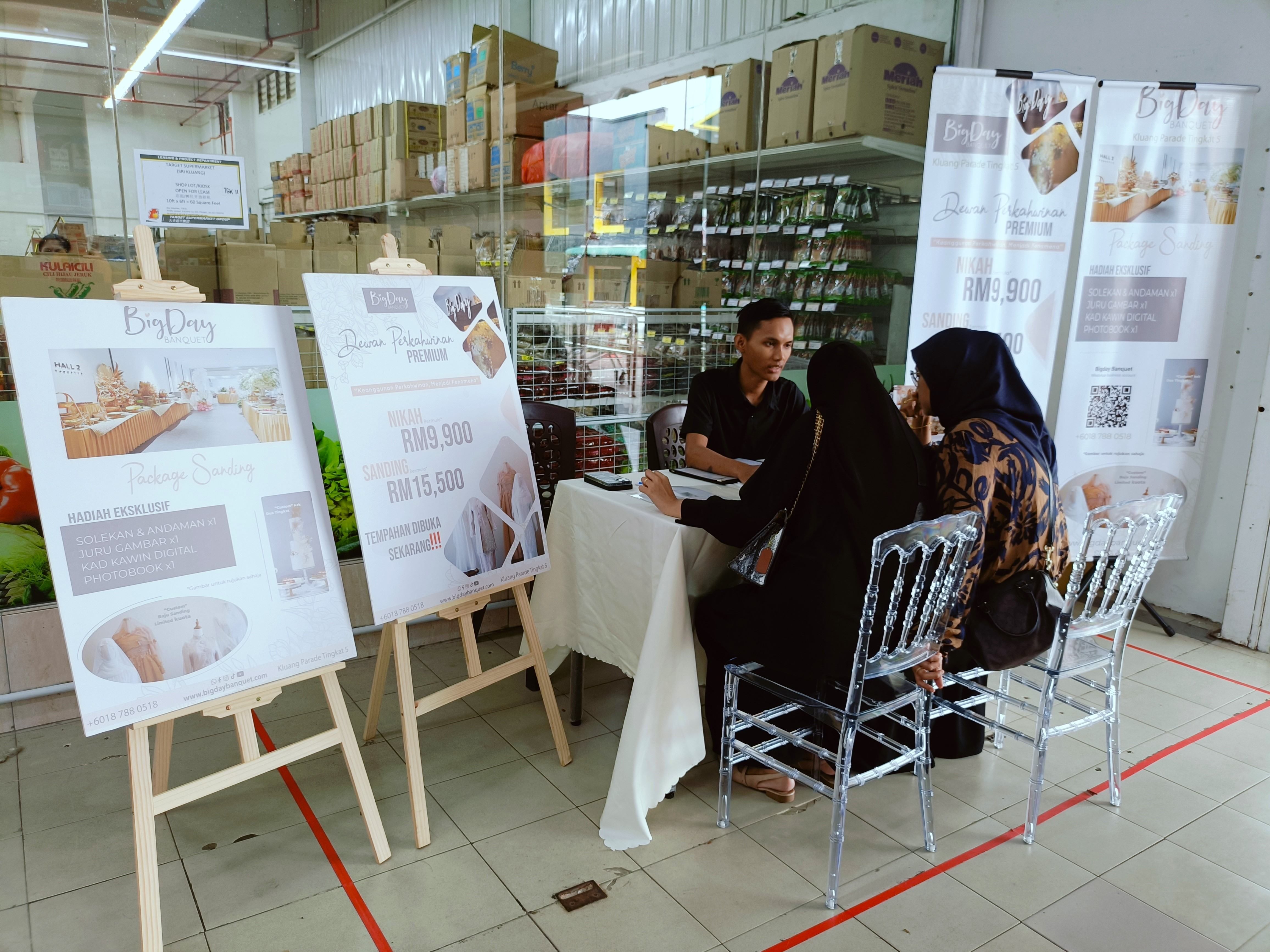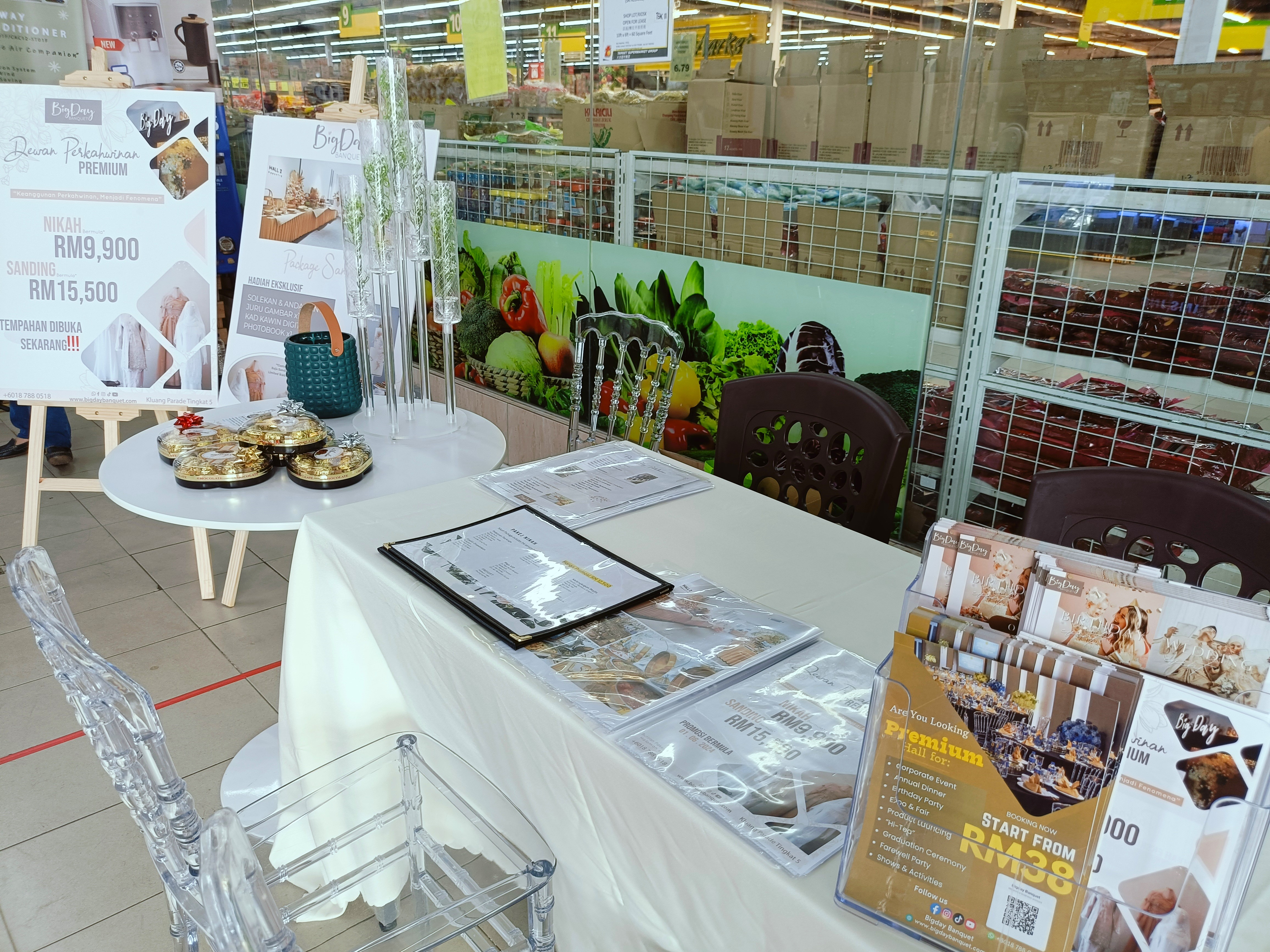 We’re thrilled to share the highlights from our recent wedding booth held at Target Supermarket in Taman Sri Kluang. This vibrant wedding booth fair was an excellent opportunity for BigDay Banquet to connect with the local community and showcase our comprehensive wedding services.